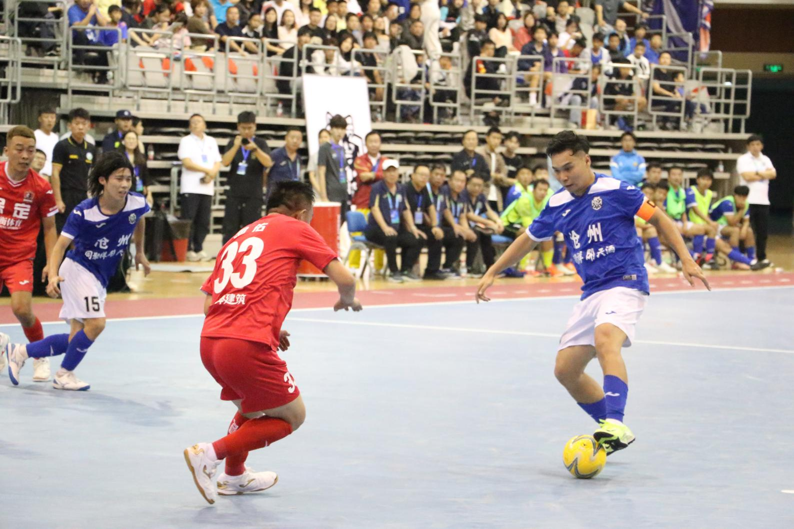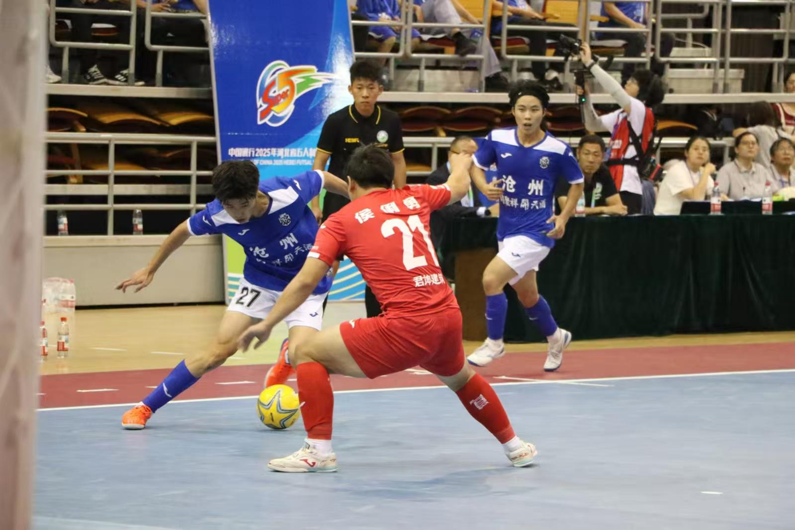 10月4日晚,2025年“河北五超”第八轮沧州队主场迎战保定队在沧州体育馆打响,现场人声鼎沸,济济一堂。赛场内,主客队之间你追我赶,攻防快速转化,虽然沧州队全程极力奋斗,但终究仍以0:7的比分负于对手。